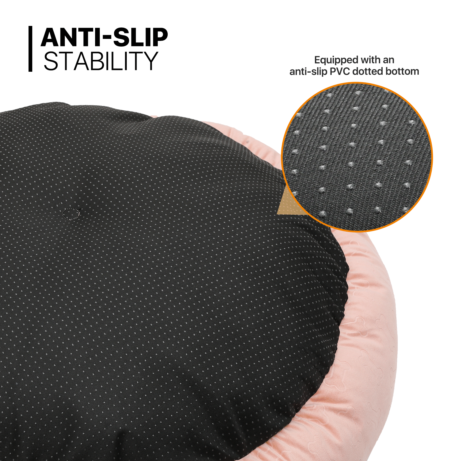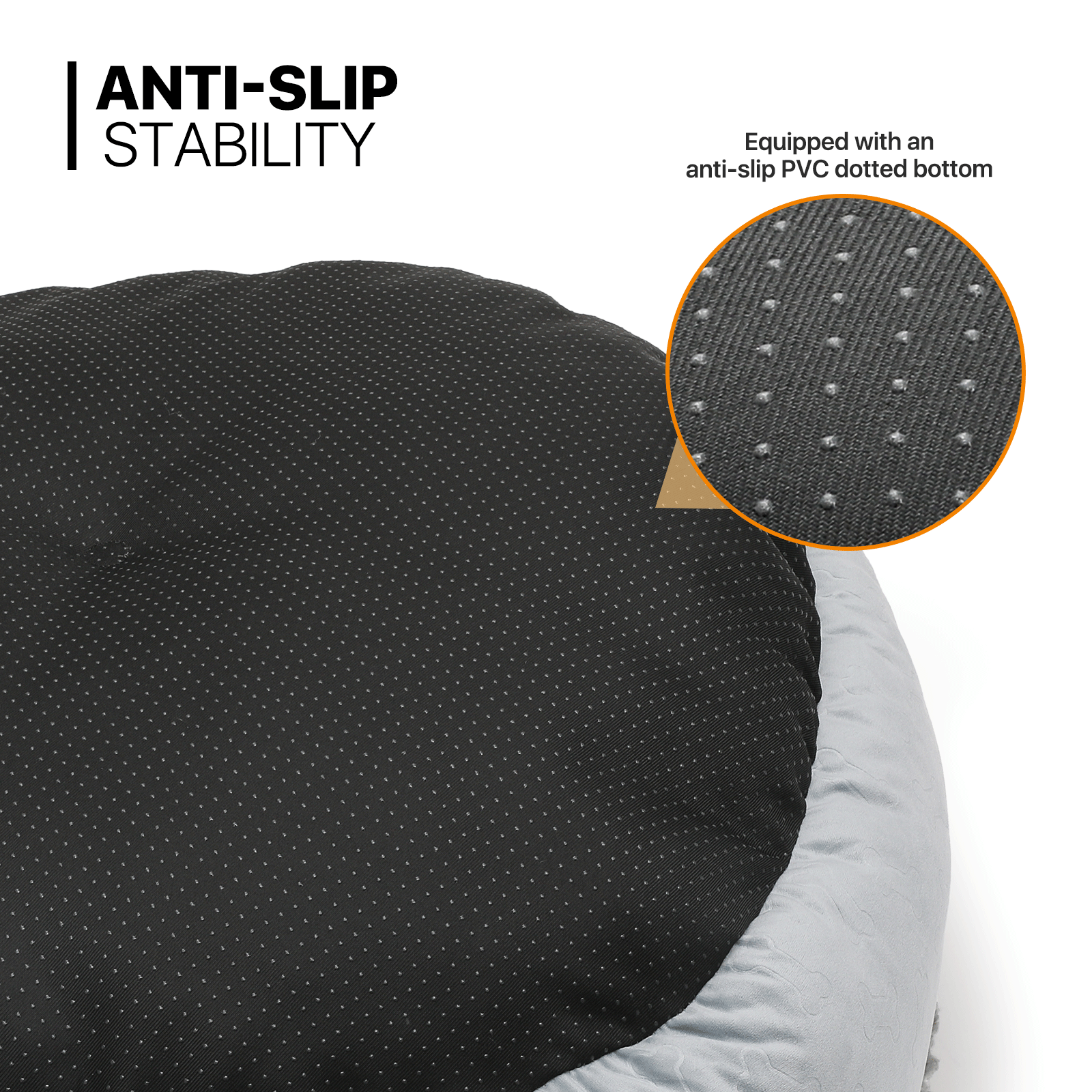 Anti-Slip Stability - Equipped with an anti-slip PVC dotted bottom. this bed stays in place on any surface. ensuring your pet's safety as they lounge or play.