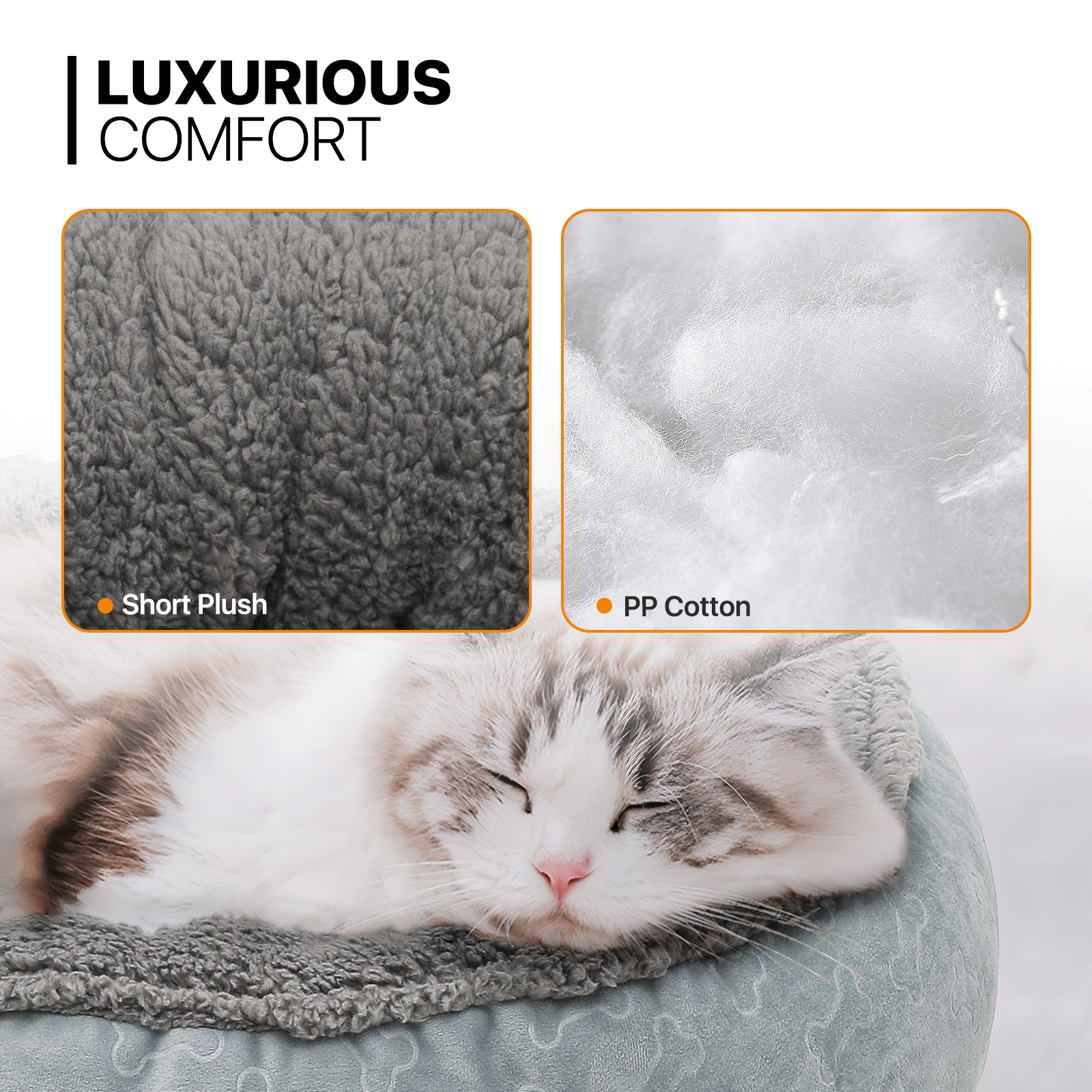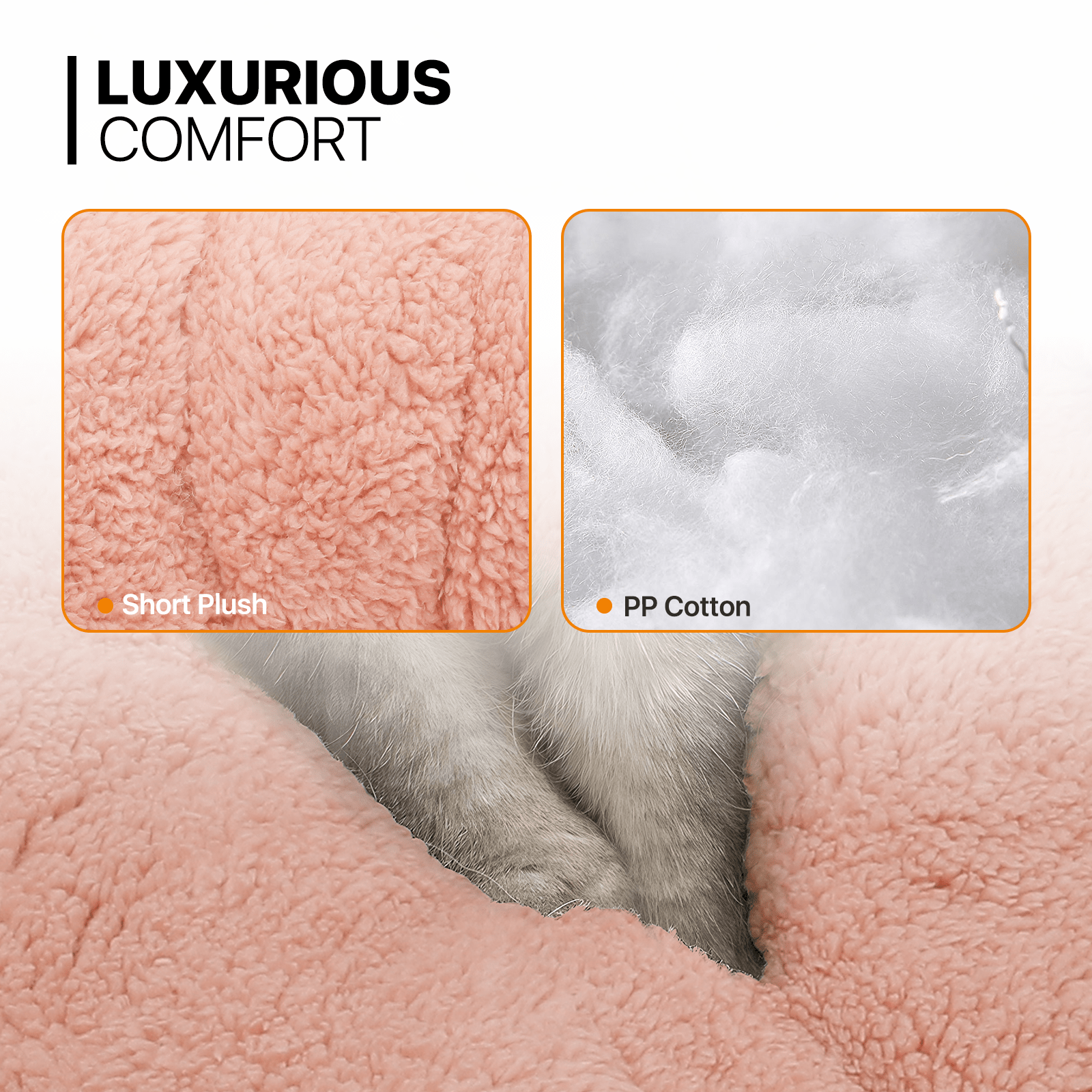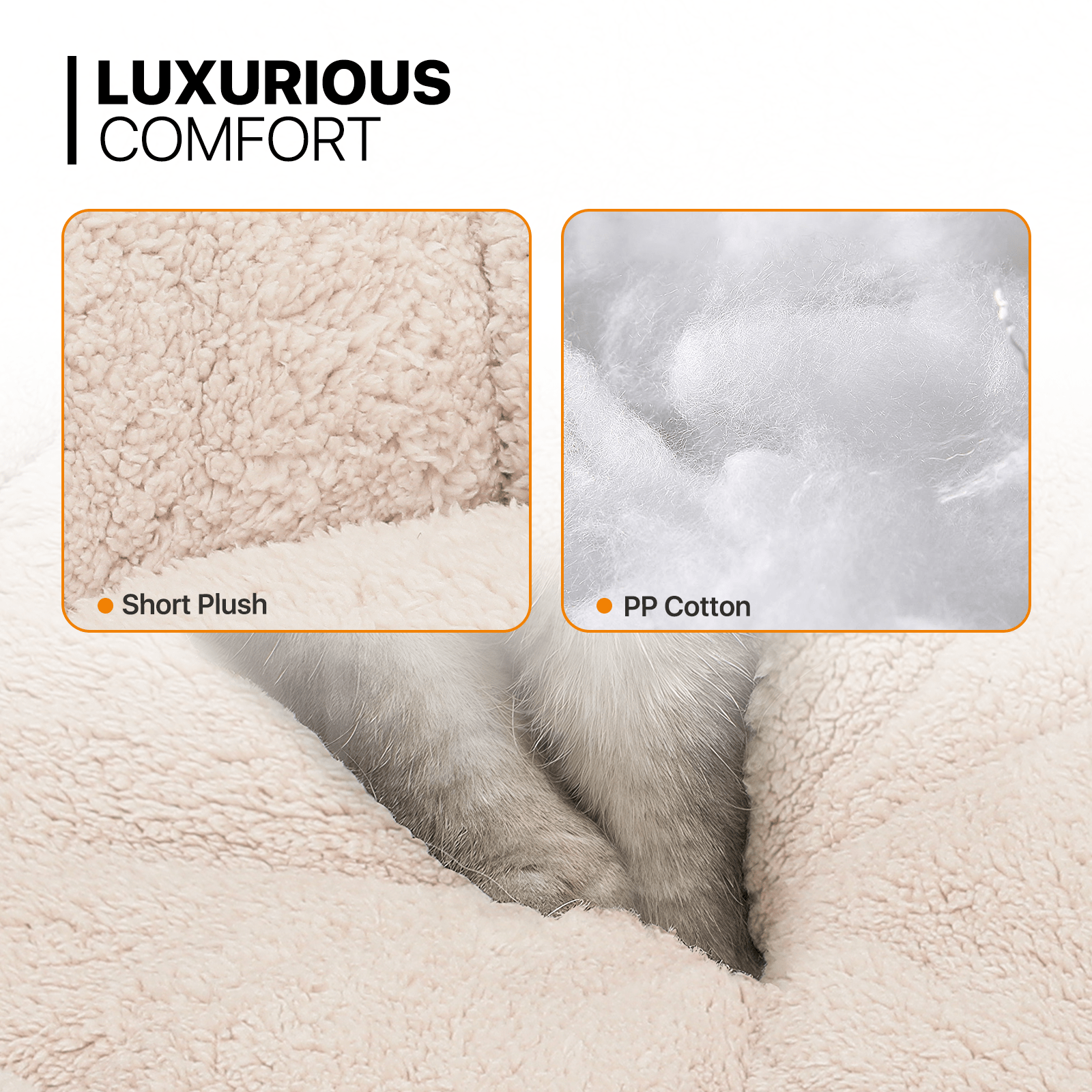 Supportive Filling - For pets that prefer a firmer feel. our short plush version with PP cotton filling provides the perfect balance of comfort and support for restful sleep.