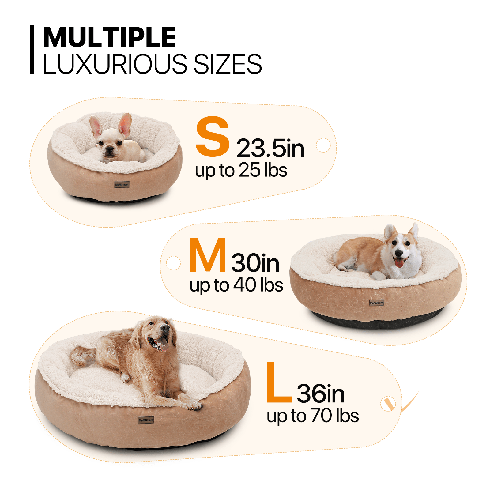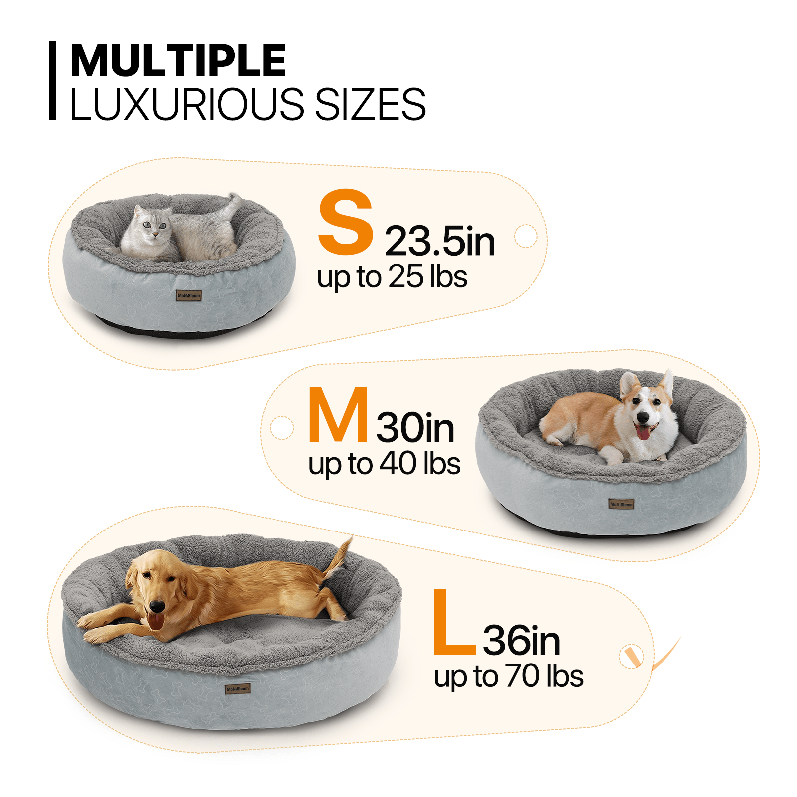 Perfect for Medium to Large Canines - With generous dimensions. our pet bed accommodates medium (26-40 lbs) to large dogs (41-70 lbs). providing the ultimate comfort zone for larger breeds.